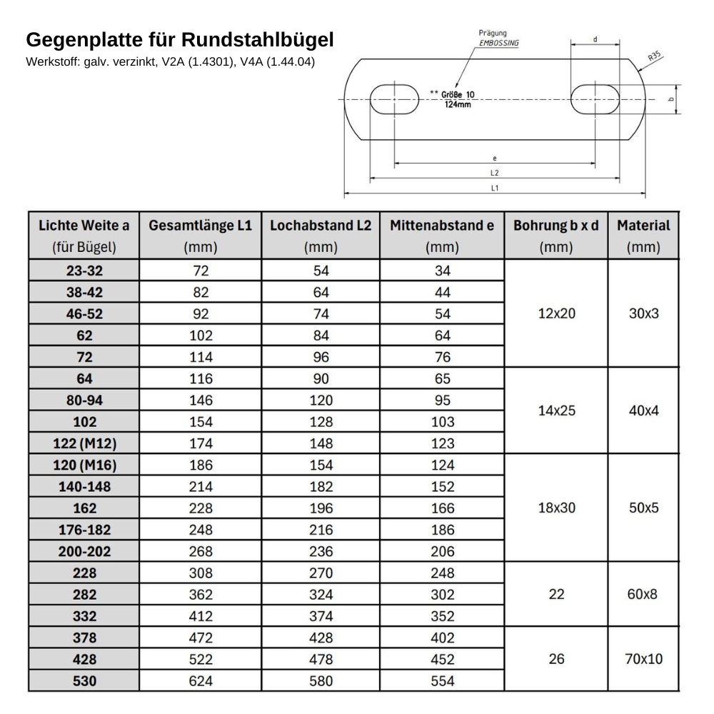 Gegenplatte für Rundstahlbügel DIN 3570 / Quadratrohrbügel / Rechteckbügel DIN 3575