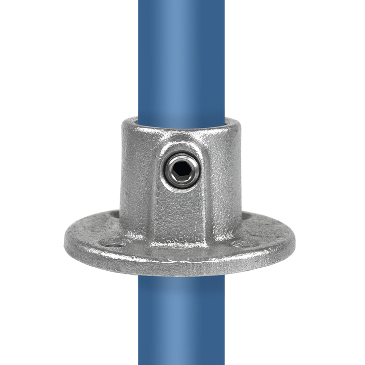 Entdecken Sie maximale Flexibilität für Ihre Konstruktionen mit der runden Fußplatte Typ 10T. Im Gegensatz zu Standard-Bodenflanschen ist dieser Rohrverbinder durchgehend offen. Das bedeutet: Das Rohr endet nicht im Verbinder, sondern kann komplett hindurchgeschoben werden.